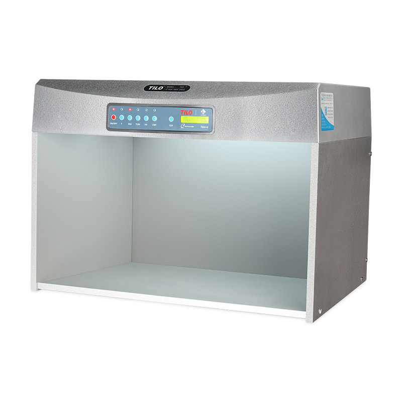 TILO天友利对色灯箱,加入紫外线光波部分,具有接近天然日光的检测效果。可独立或与其它光源一并使用,更有效地检测产品、染料及涂料上的荧光增白剂。它还具有多光源开关优点,可轻松检测样本间有无同色异谱现象(该现象指样本颜色于某光源下相配,但转到另一光源却不相配)。