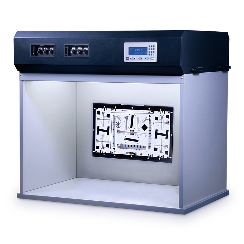 摄像头测试标准光源箱T90-7主要由:观察箱、光源箱、控制面板、把手等几部分组成,为摄像头测试提供标准光源环境。